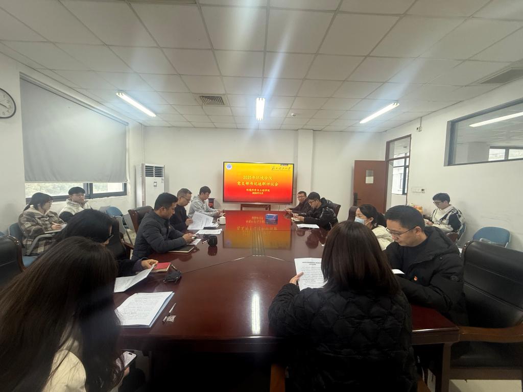 党委在四楼会议室召开2025年度党支部书记述职会。学院党委书记潘杨主持,党委副书记顾银君、各党支部书记及组织员参加。