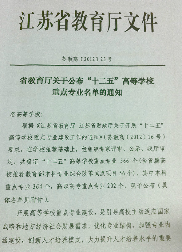 江苏省重点专业类建设